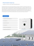 Технічні характеристики:Номінальна потужність,50 000 Вт (50 кВт)Макс. потужність PV-масиву,до 75 000 Вт (75 кВт)Кількість MPPT трекерів,4 незалежні трекериКількість стрингів,8 (по 2 на кожен MPPT)Максимальний ККД,98.8%Діапазон напруги MPPT,180 – 1000 ВКлас захисту,IP65 (повна герметичність)
